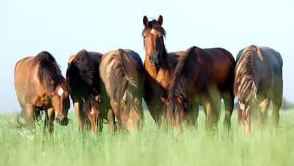 Um die Verdauung deines Pferds nicht zu überfordern, solltest du es am ersten Tag nur zehn bis fünfzehn Minuten grasen lassen. Steigere im Anschluss von Tag zu Tag die Fresszeit. Nach etwa drei bis vier Wochen können die Pferde dann ganztags auf die Weide. Zu kurz dürfen die Intervalle allerdings nicht sein, weiß Ernährungsexperte Professor Manfred Coenen: „Erst ab einer bestimmten Grasmenge bekommt der Verdauungstrakt signalisiert, dass er sich umstellen muss. Fünf Minuten grasen reichen dafür nicht.“ Der Direktor des Instituts für Tierernährung der Veterinärmedizinischen Fakultät in Leipzig rät daher Pferdebesitzern, ihre Tiere auch schon am Anfang der Frischluftsaison bis zu zwei Stunden auf die Weide zu lassen.