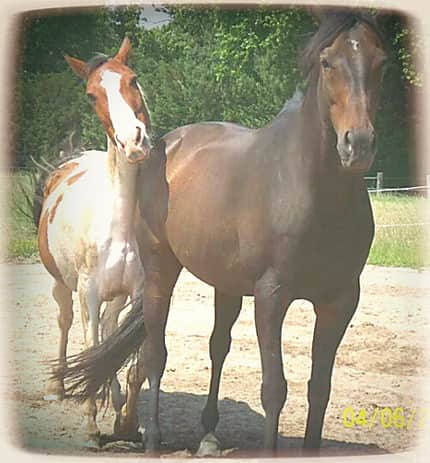 CAVALLO-Leserin Martina schreibt: "Meine 22-jährige Paint-Mix-Stute rechts im Bild mit ihrem wunderschönen Keilstern."