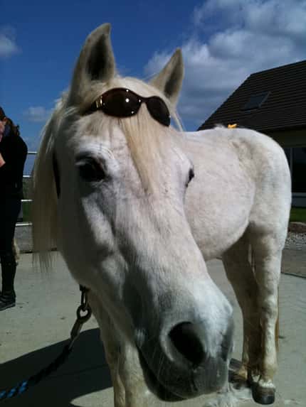 CAVALLO-Leserin Petra schreibt uns: “Das ist Flamenco. Er wird im Mai 2012 dreißig Jahre alt. Er ist immer noch Chef seiner Herde, will immer beschäftigt werden, ist knurrig wenn man es mal nicht macht. Er hat keinerlei Backenzähne mehr und lebt nur noch von Heucobs – und das jede Menge. Er ist einfach das Beste was man sich wünschen kann von einem Pferd. Wenn man sich verreitet findet er immer noch nach Hause.„