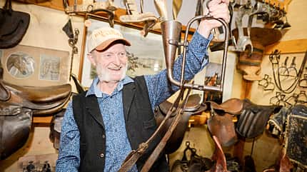 Doch das ist noch nicht alles – denn kaum schließt sich die Tür des Kunsthandwerkerhofs hinter uns, treten wir schon in die nächste Schatzkammer ein: das "Museum für Reitkultur". Seit 1973 sammelt Christoph Rieser historische Reitausrüstung, von martialisch aussehenden Radsporen aus Chile ("Das ist natürlich Machogehabe") über reich verzierte Steigbügel und Militärsättel. Rieser zeigt ein Modell des legendären "Armeesattel 25": "Da sieht man, wie groß die Auflagefläche ist, wie breit der Wirbelkanal.