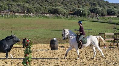CAVALLO-Autorin Cathrin Flößer reitet bei einem Working-Equitation-Kurs mit.