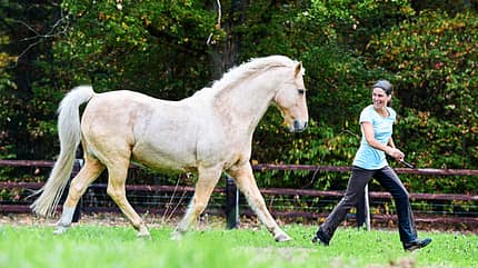 Ist das Pferd dagegen triebig, hält es sich ebenfalls in der Muskulatur fest und reagiert verzögert auf die Signale des Menschen. Wer sich in der Freiarbeit einen gleichmäßigen Schritt und Trab erarbeitet, kann daran bei der Arbeit unter dem Sattel anschließen.